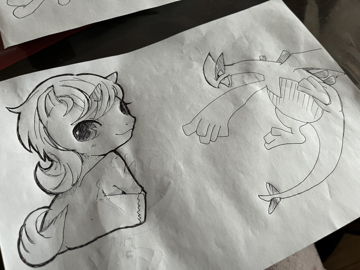 そして私が描いたユニコーン🦄(右のポケモンはおまけ。)
