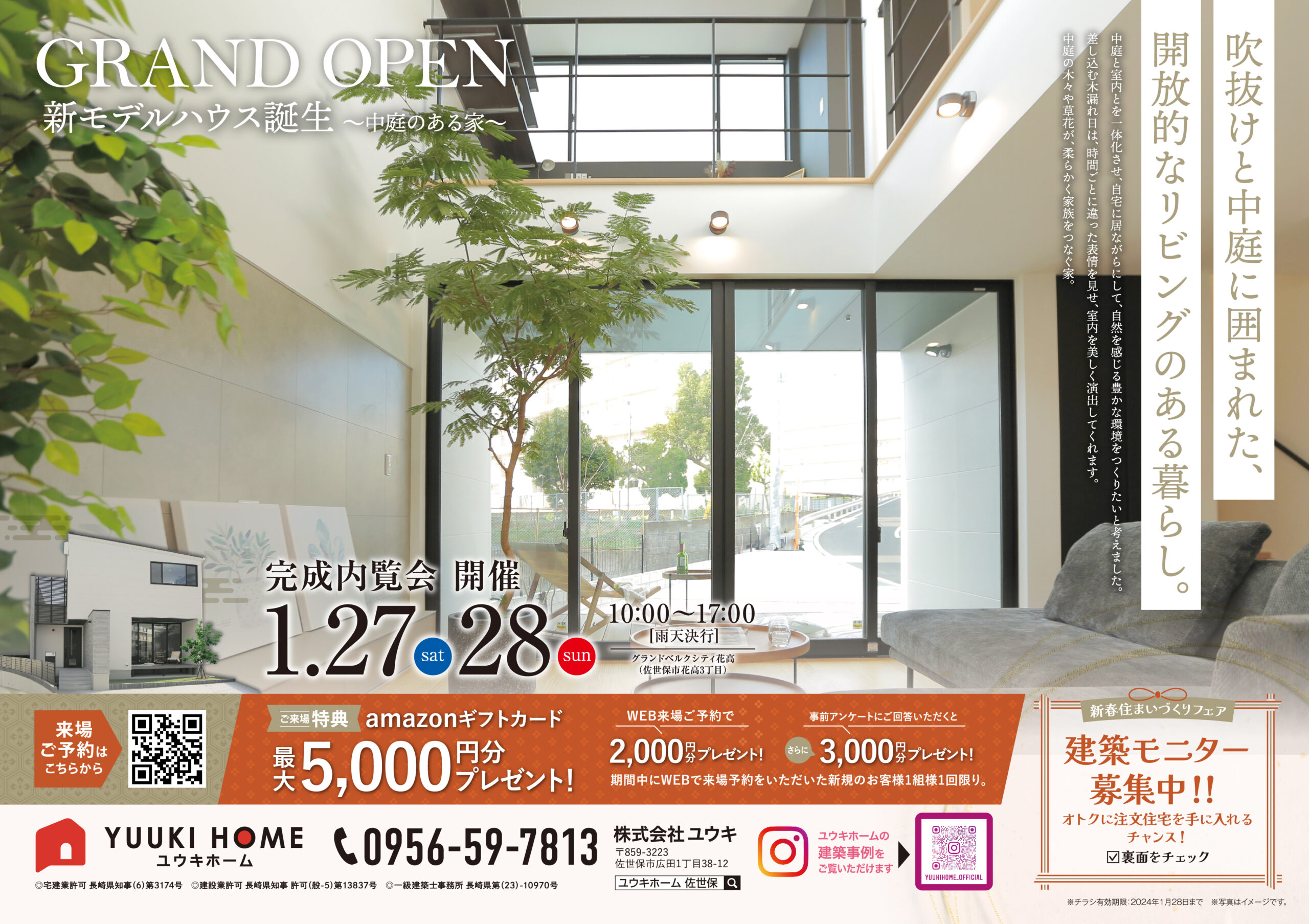 1月27日(土)・28日(日)に35坪3LDKのNEWモデルハウス『中庭のある家』の完成内覧会を開催させていただきます。