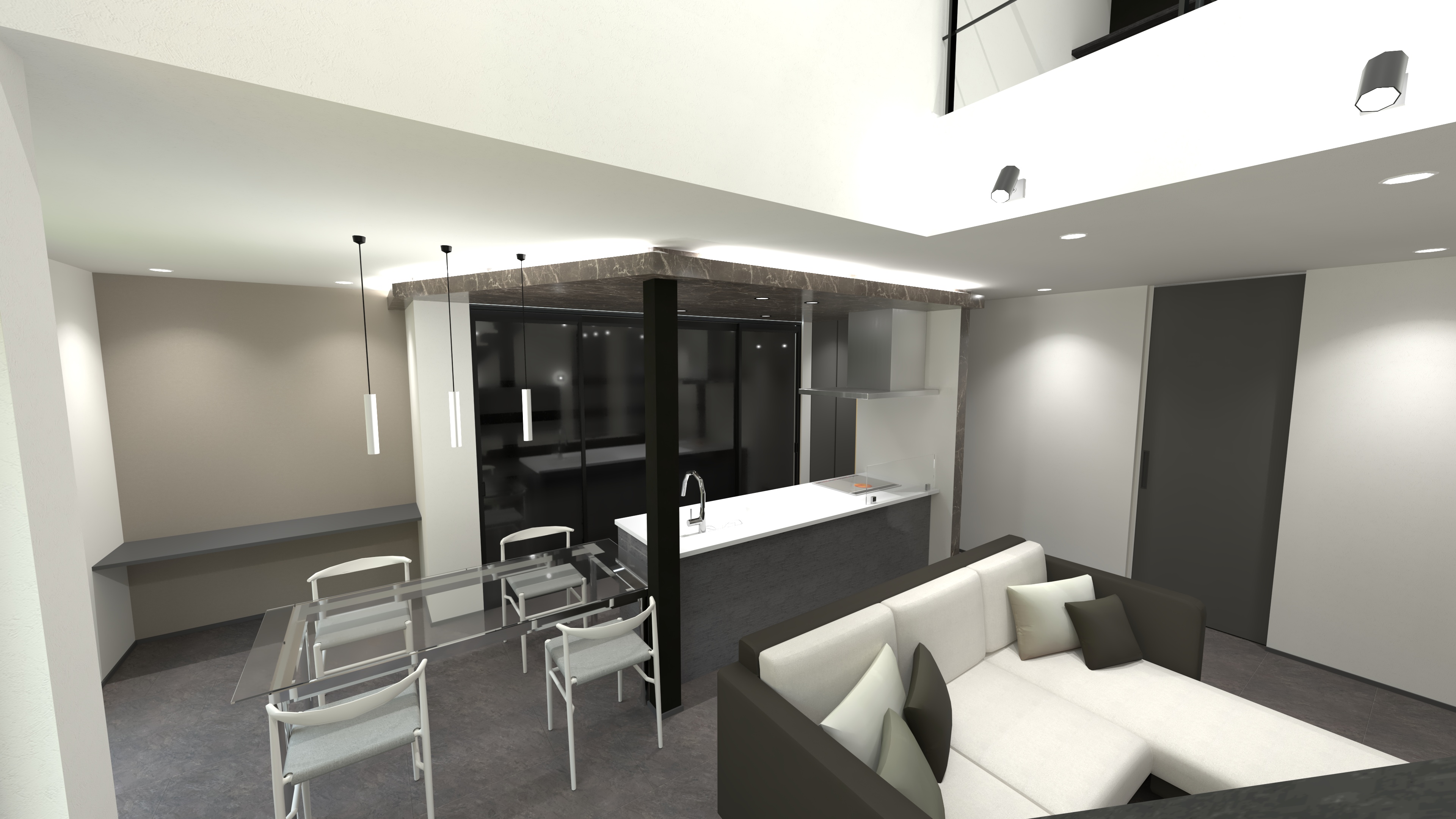 吹き抜けのあるリビングとスケルトン階段が、空間全体に開放感をもたらします。