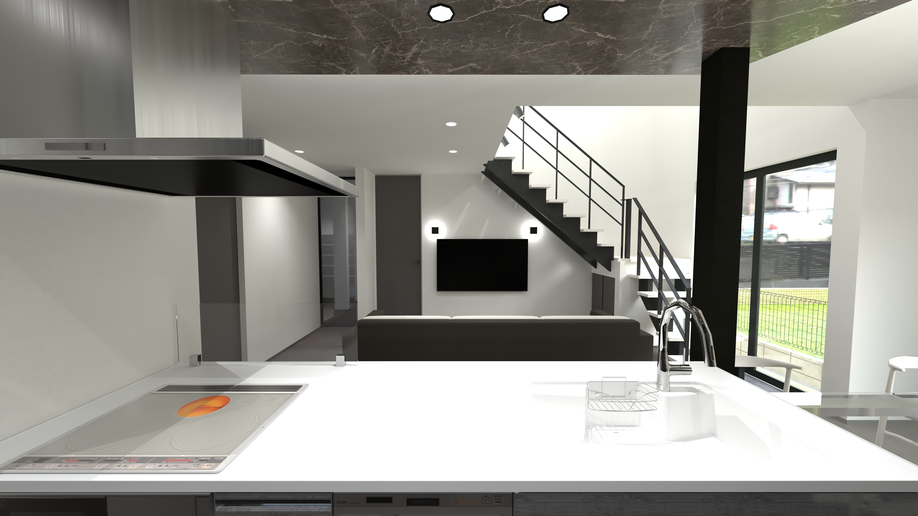 また、回遊できるキッチンや、隠せる背面の大容量収納など、暮らしやすさにもこだわったクールなお家です。