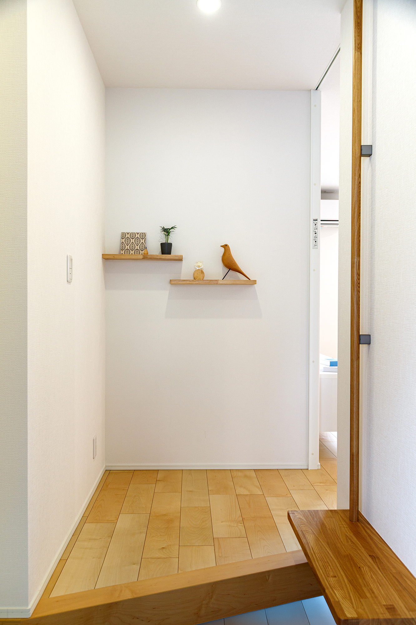 玄関を彩る飾り棚のインテリア。玄関ベンチも付けました。